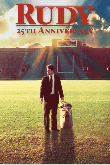 Rudy is a 1993 American biographical sports film directed by David Anspaugh. It is an account of the life of Daniel “Rudy” Ruettiger, who harbored dreams of playing football at the University of Notre Dame despite significant obstacles.